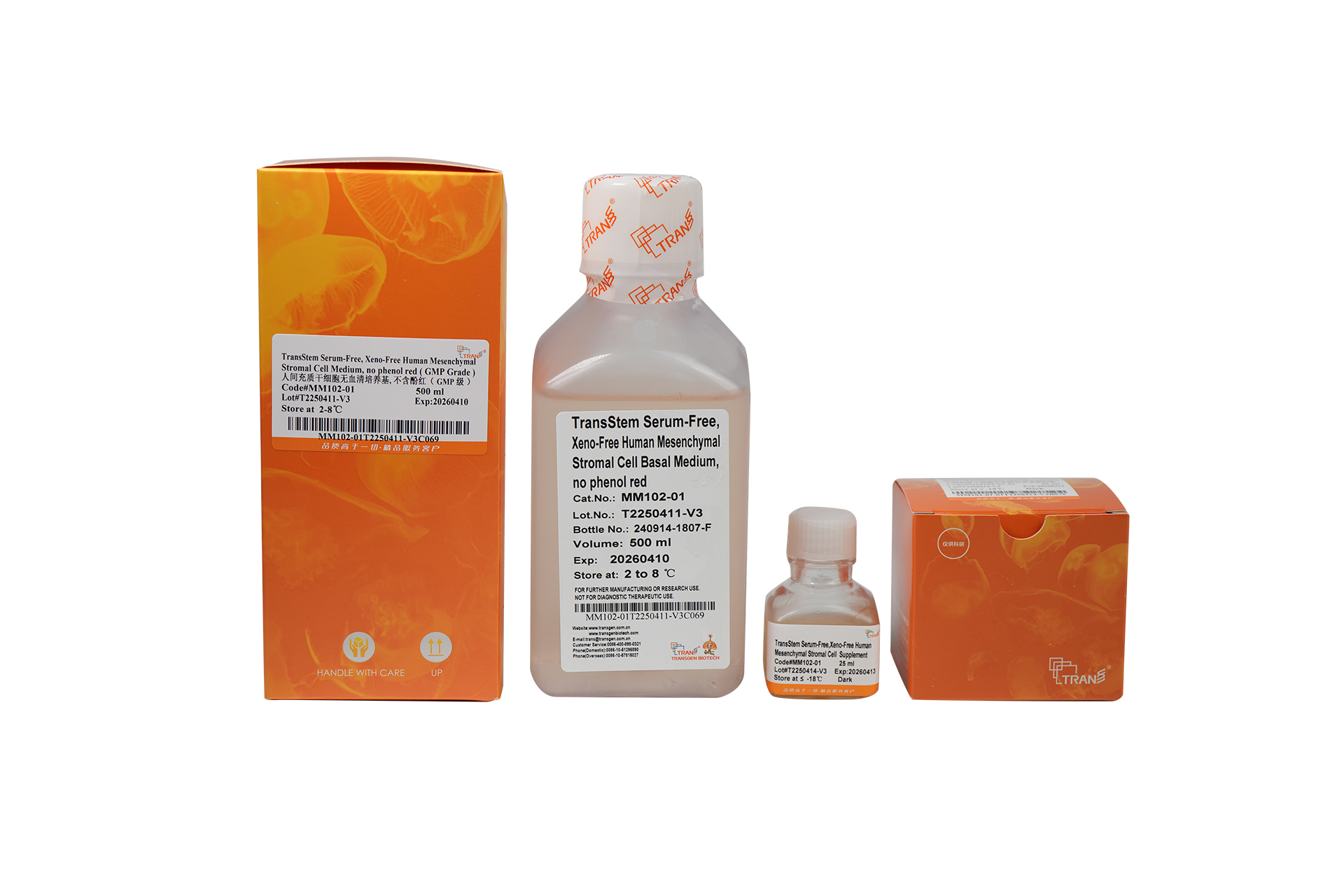 TransStem? Serum-Free, Xeno-Free Human Mesenchymal Stromal Cell Medium,no phenol red (GMP Grade)是一種GMP級(jí)別的無(wú)血清、無(wú)動(dòng)物源性成分的完全培養(yǎng)基,適合人多能性干細(xì)胞衍生、臍帶、骨髓、脂肪等多種來(lái)源的間充質(zhì)干細(xì)胞(human mesenchymal stromal cells, hMSCs)的分離、擴(kuò)增和復(fù)蘇。本產(chǎn)品穩(wěn)定性好,支持hMSCs穩(wěn)定傳代至15代。利用本產(chǎn)品培養(yǎng)的hMSCs具有較高的成骨、軟骨、脂肪細(xì)胞分化的能力和較強(qiáng)的免疫調(diào)節(jié)能力。