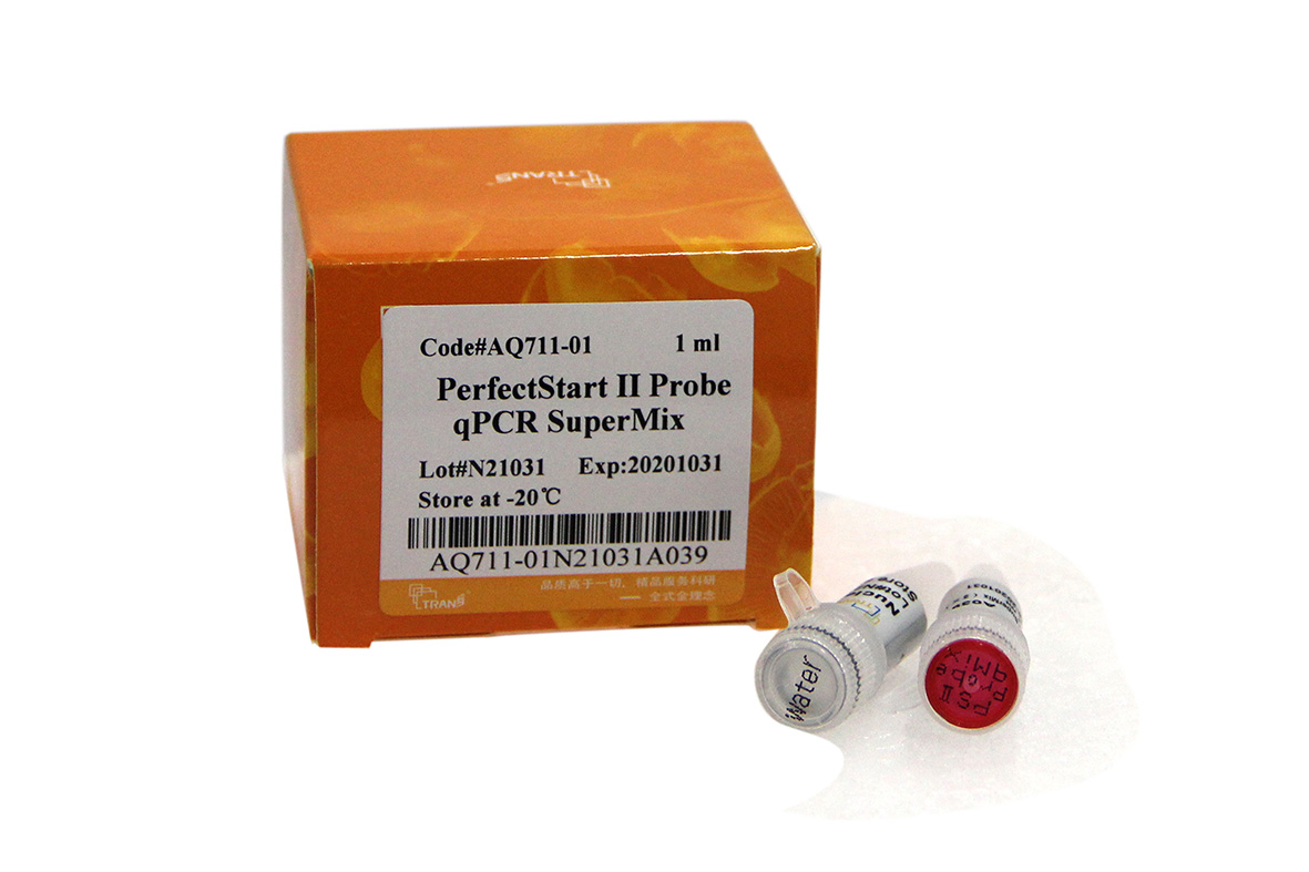 PerfectStart? II Probe qPCR SuperMix利用在PCR體系中加入熒光探針 (TaqMan或Molecular Beacon等),擴增過程中其 熒光量與擴增產(chǎn)物量成正比,通過熒光量的檢測測定樣本核酸量。本產(chǎn)品含PerfectStartTM Taq熱啟動酶 (利用3種單克 隆抗體與Taq DNA Polymerase高效結(jié)合,有效地封閉了DNA聚合酶活性,阻止了低溫下的非特異性擴增)、特殊優(yōu)化的qPCR反應(yīng)緩沖液、dNTPs、PCR增強劑、穩(wěn)定劑。本產(chǎn)品濃度為2×,使用時只需加入模板、引物、探針、Passive Reference Dye (根據(jù)qPCR儀選擇) 和水,使其工作濃度為1×,即可進行反應(yīng)。
