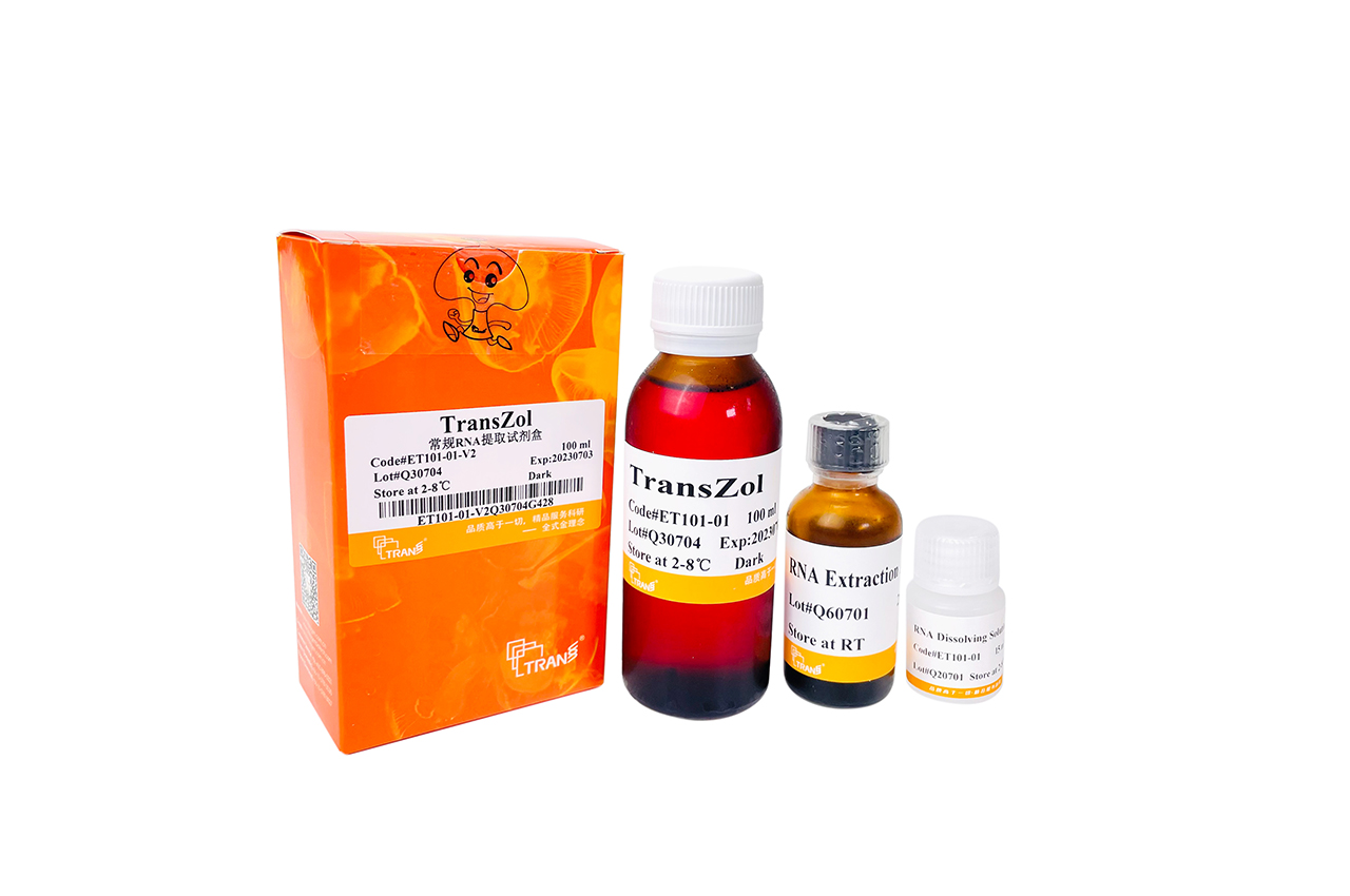 TransZol利用異硫氰酸胍裂解細胞。在樣品的裂解過程中,TransZol可保持RNA完整性,加入RNA Extraction Agent后,溶液分為無色水相和粉紅色有機相,RNA在水相,用異丙醇可沉淀回收RNA,有機相用異丙醇可回收蛋白質。適用于快速提取多種組織和細胞中的總RNA。