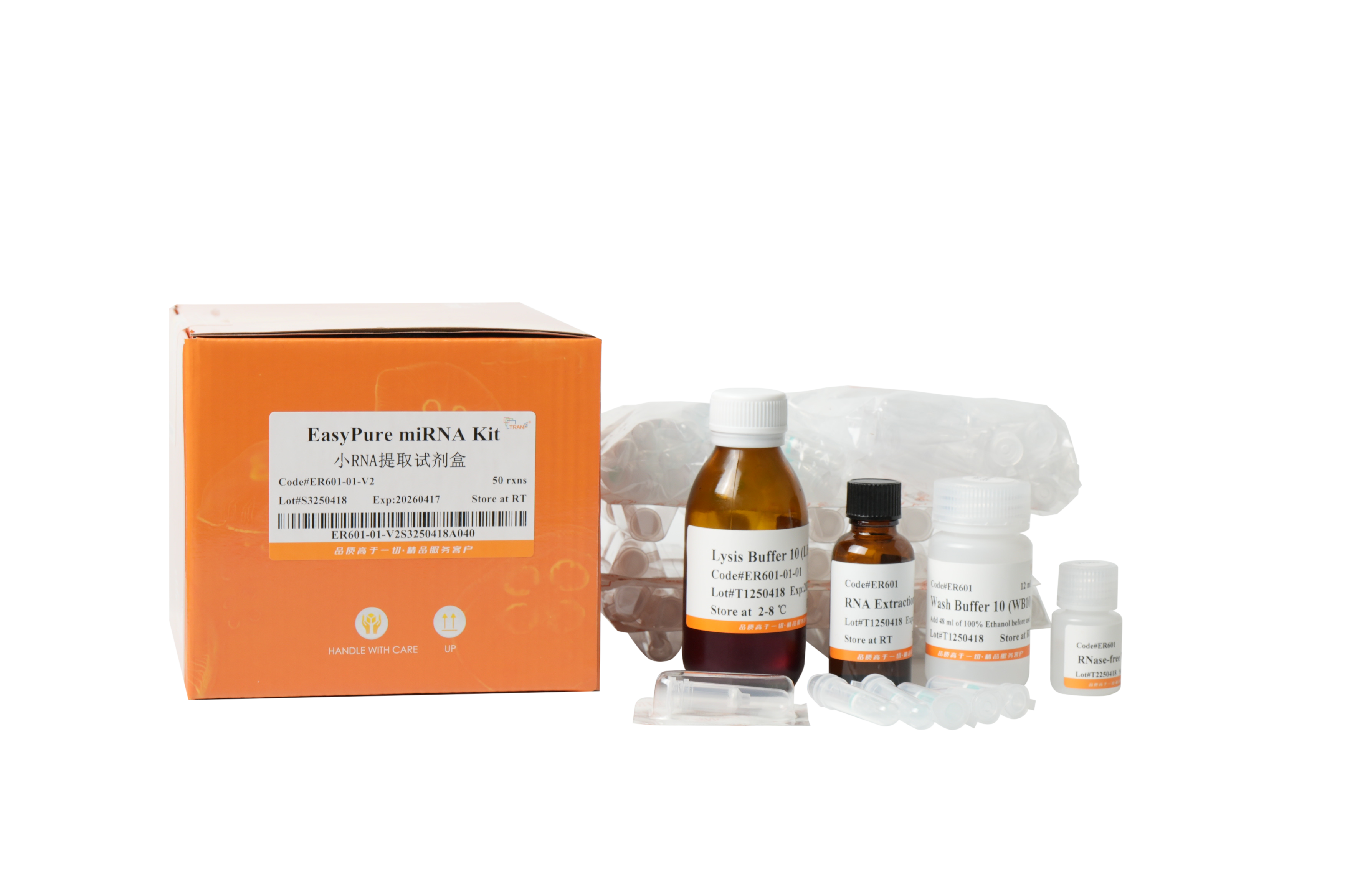 本產(chǎn)品適用于從細胞、組織、新鮮血液、外泌體中提取miRNA和Total RNA,裂解樣品后,加入RNA Extraction Agent,溶液分為無色水相和粉紅色有機相,RNA 在水相。通過調(diào)整加入水相中無水乙醇的用量,使RNA離心柱特異地吸附大分子量RNA(28S rRNA, 18S rRNA, mRNA)后,將流出液 (包含小于200 nt 的RNA, 如miRNA, siRNA, shRNA, snRNA 等) 再經(jīng)miRNA離心柱特異地吸附純化得到的miRNA;通過調(diào)整加入水相中無水乙醇的用量,使RNA離心柱吸附所有RNA (包含小于200 nt 的RNA, 如miRNA, siRNA, shRNA, snRNA 等)。本產(chǎn)品裂解能力強、提取量高、應(yīng)用范圍廣。