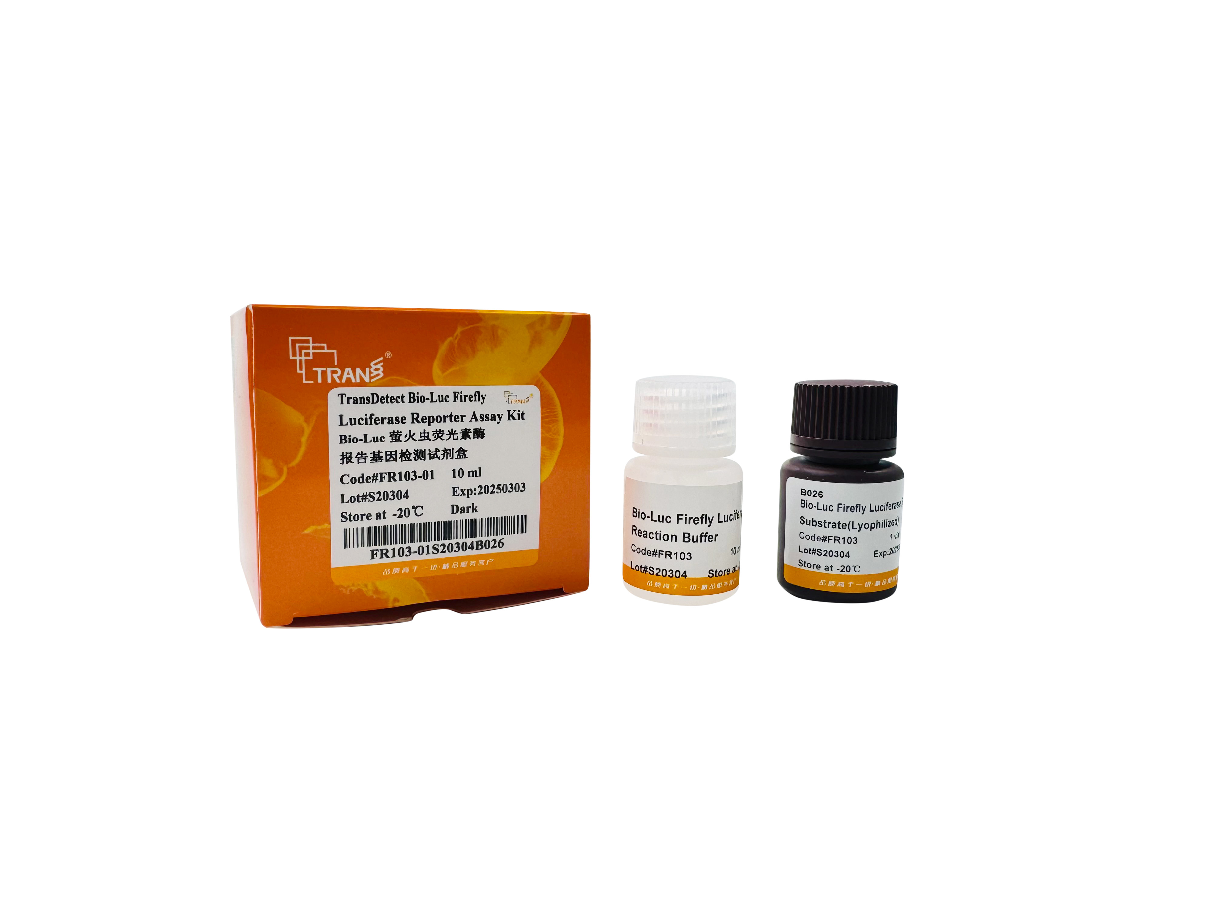 Bio-Luc Firefly Luciferase Reporter Assay Kit是一種高靈敏度、高穩(wěn)定性、均質(zhì)的螢火蟲熒光素酶報(bào)告基因檢測系統(tǒng),無需洗滌、無需收集細(xì)胞,可快速高效直接測定細(xì)胞內(nèi)熒光素酶表達(dá)量的試劑盒。本試劑盒中含有熒光素(luciferin)以及優(yōu)化后的反應(yīng)試劑,基于熒光素酶系統(tǒng)直接在細(xì)胞培養(yǎng)體系中加入配制好的Bio-Luc檢測液,充分裂解細(xì)胞釋放出熒光素酶,即可發(fā)出穩(wěn)定的可被檢測的光信號(hào)。